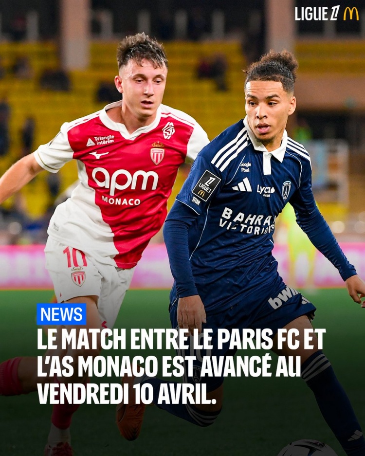 法甲发布公告,确认由于举办巴黎马拉松,原定于4月12日进行的巴黎FC主场对阵摩纳哥比赛改期至4月10日。